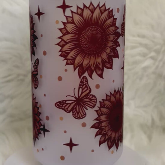18oz Sam Fall Flowers Frosted Glass Tumbler