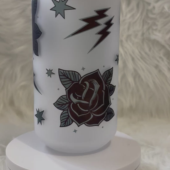 This high quality frosty glass can will pair perfect with your iced coffee or cocktail! Includes a leak proof bamboo lid and glass straw. Not recommended for hot drinks.