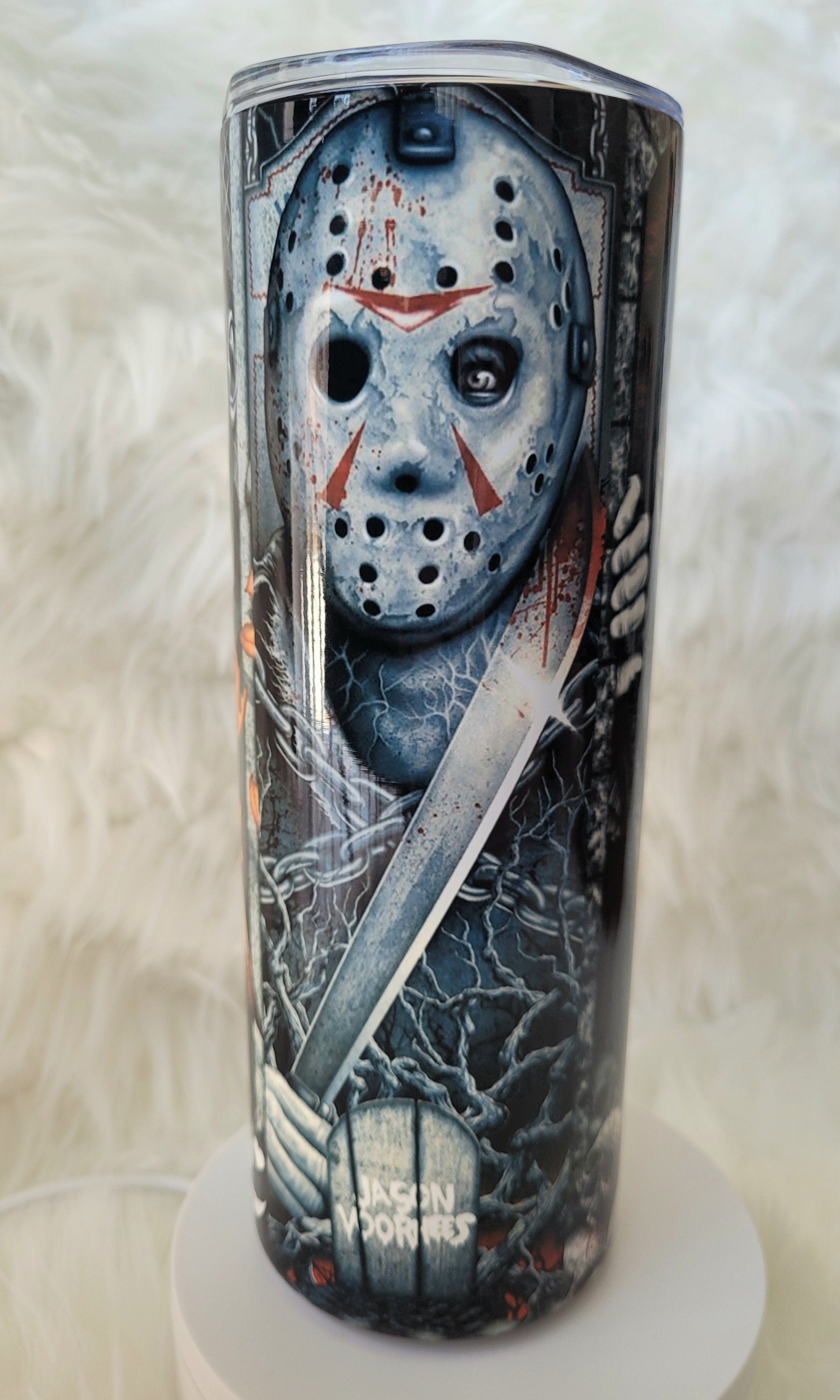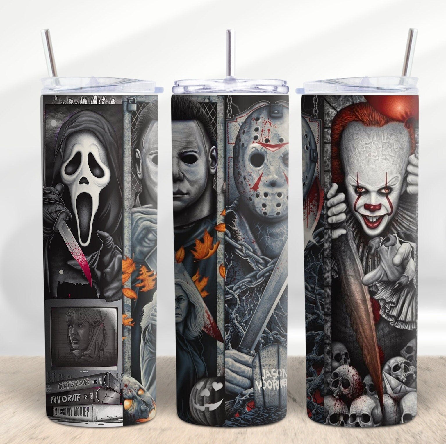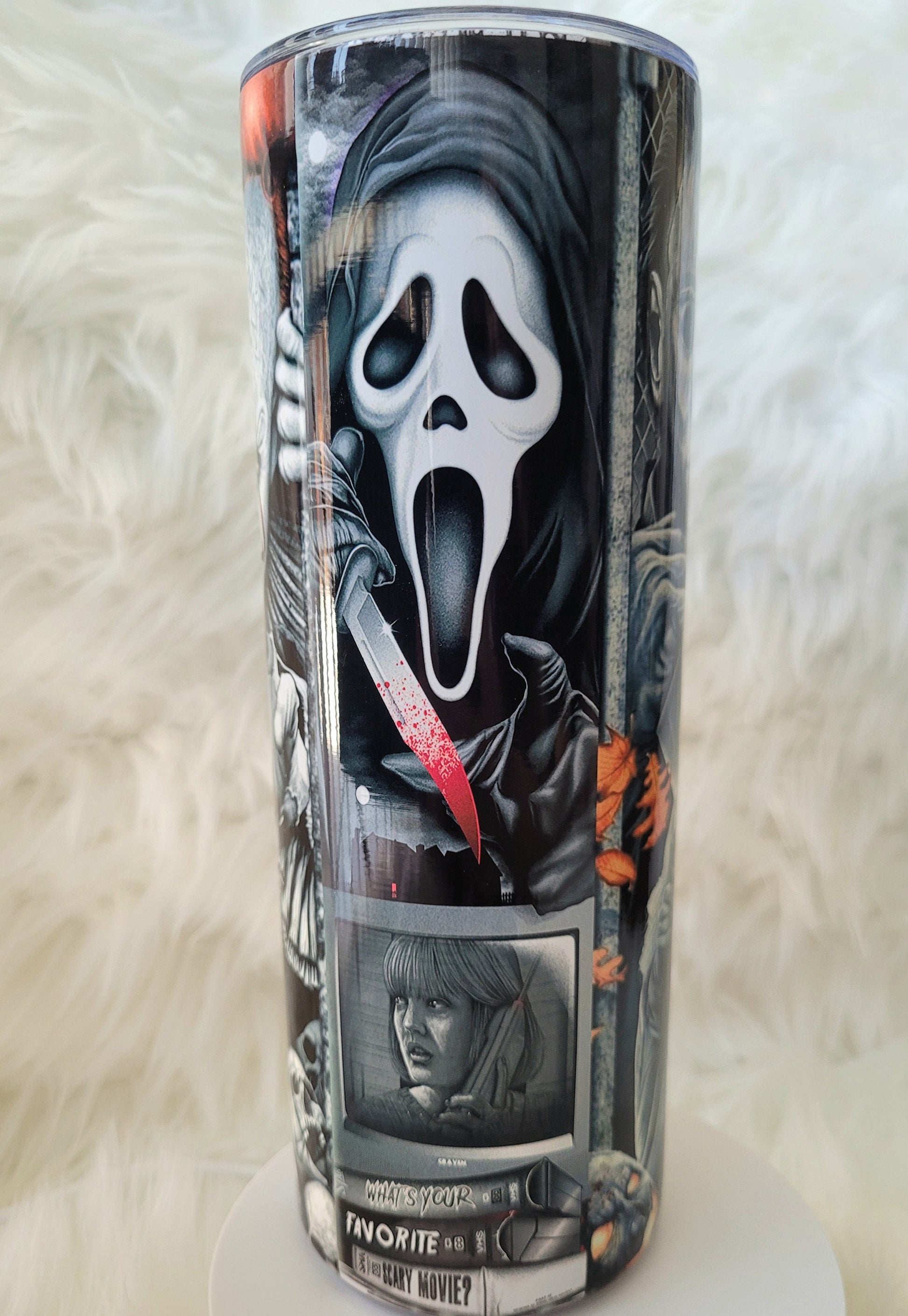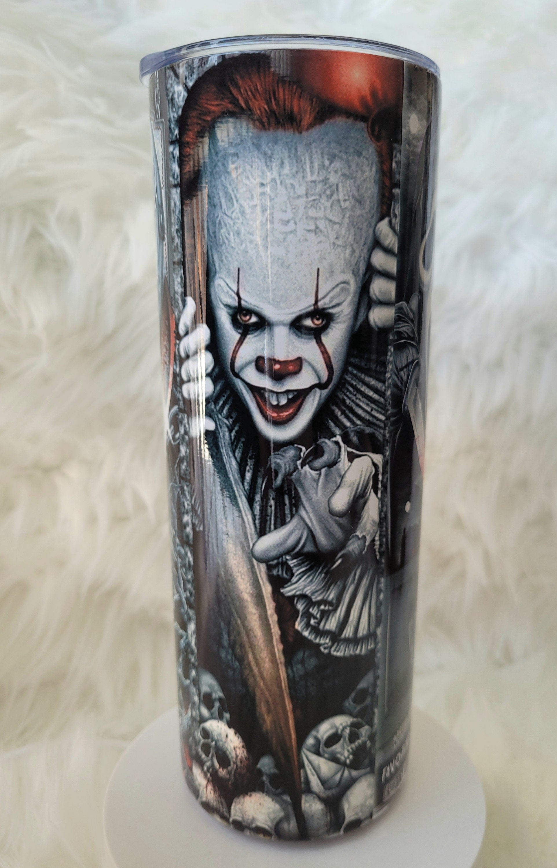 20oz Black and White Horror Character Tumbler with a splash of color!