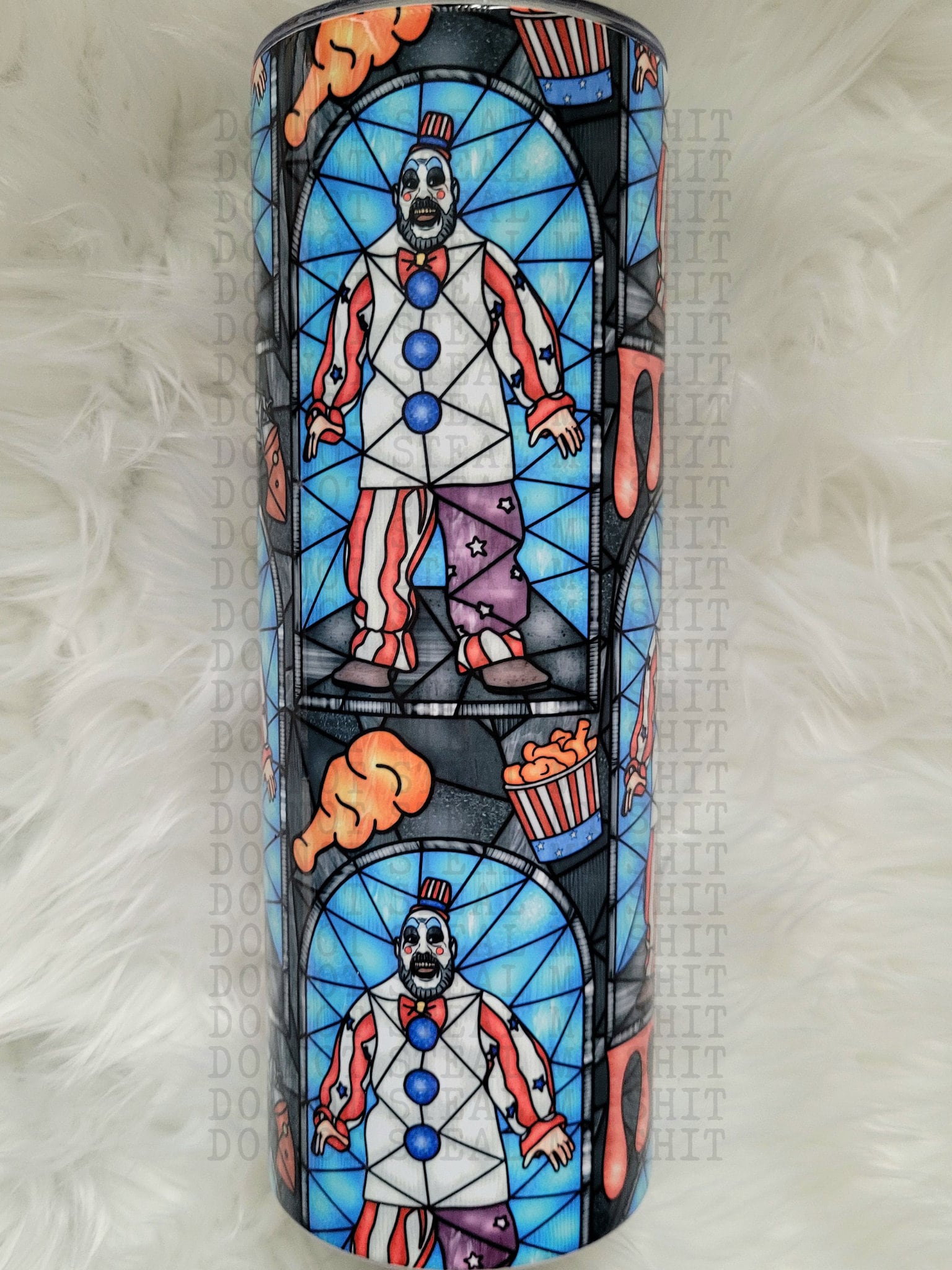 20oz Black and White Horror Character Tumbler with a splash of color!