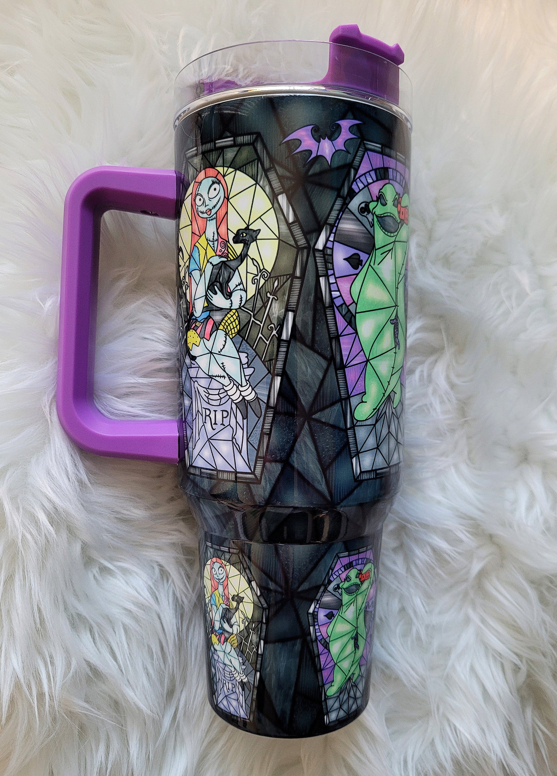 40oz Quencher Tumbler with amazing Nightmare inspired Stained Glass design.