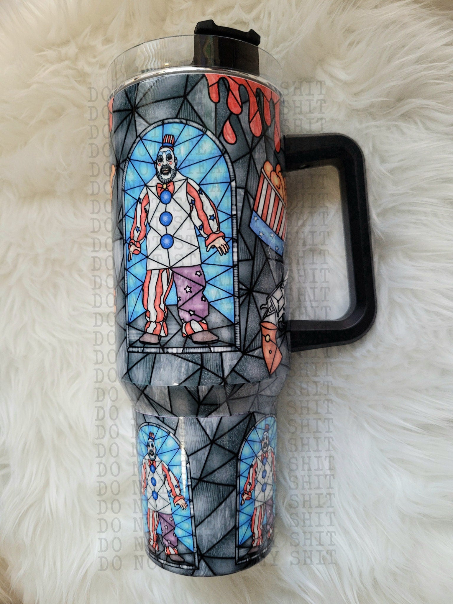 40oz Quencher Tumbler with amazing stained glass Horror character design. If you don't see your favorite character listed, ask me if I can make it!