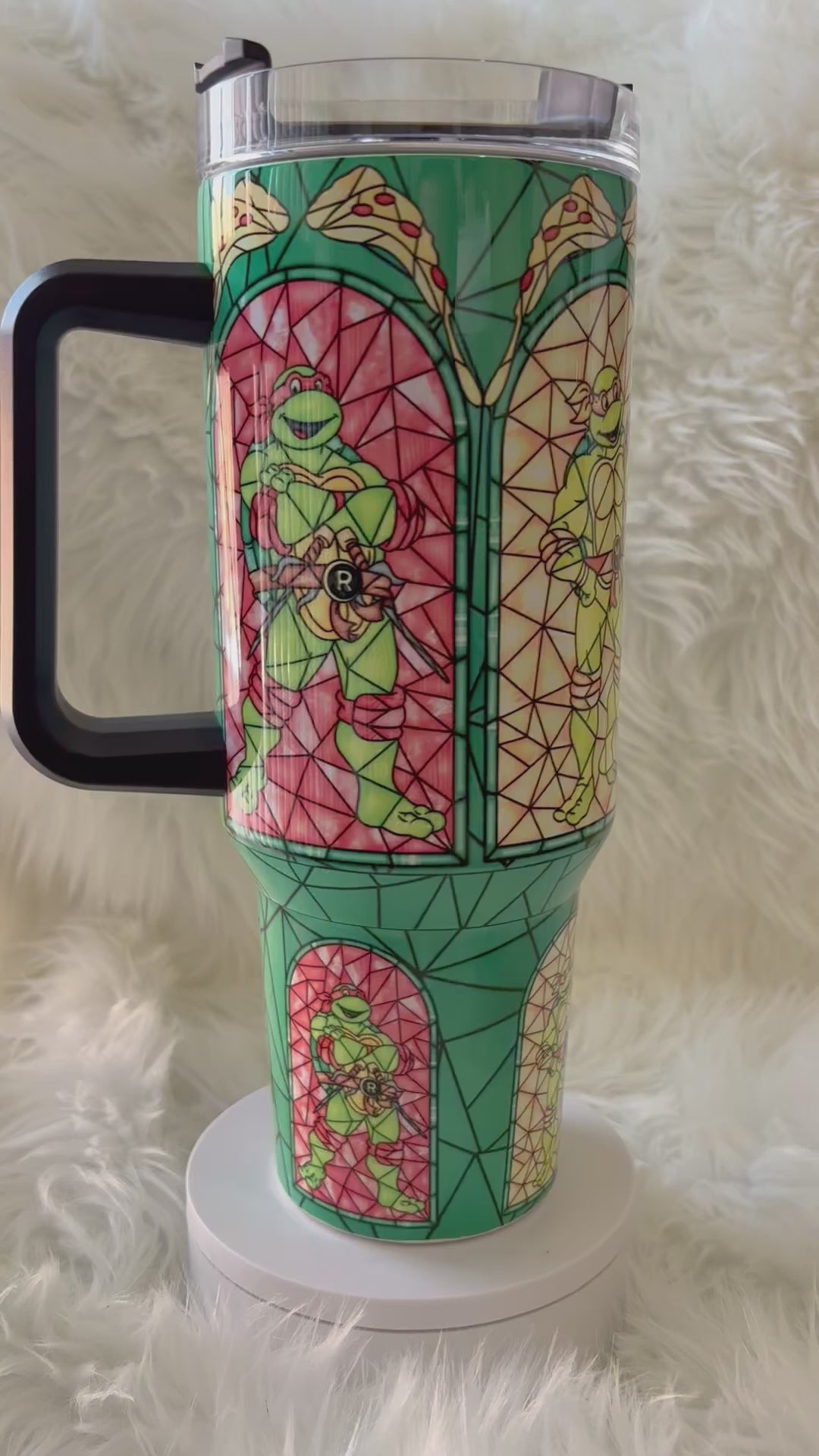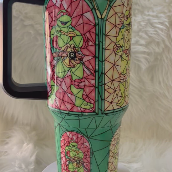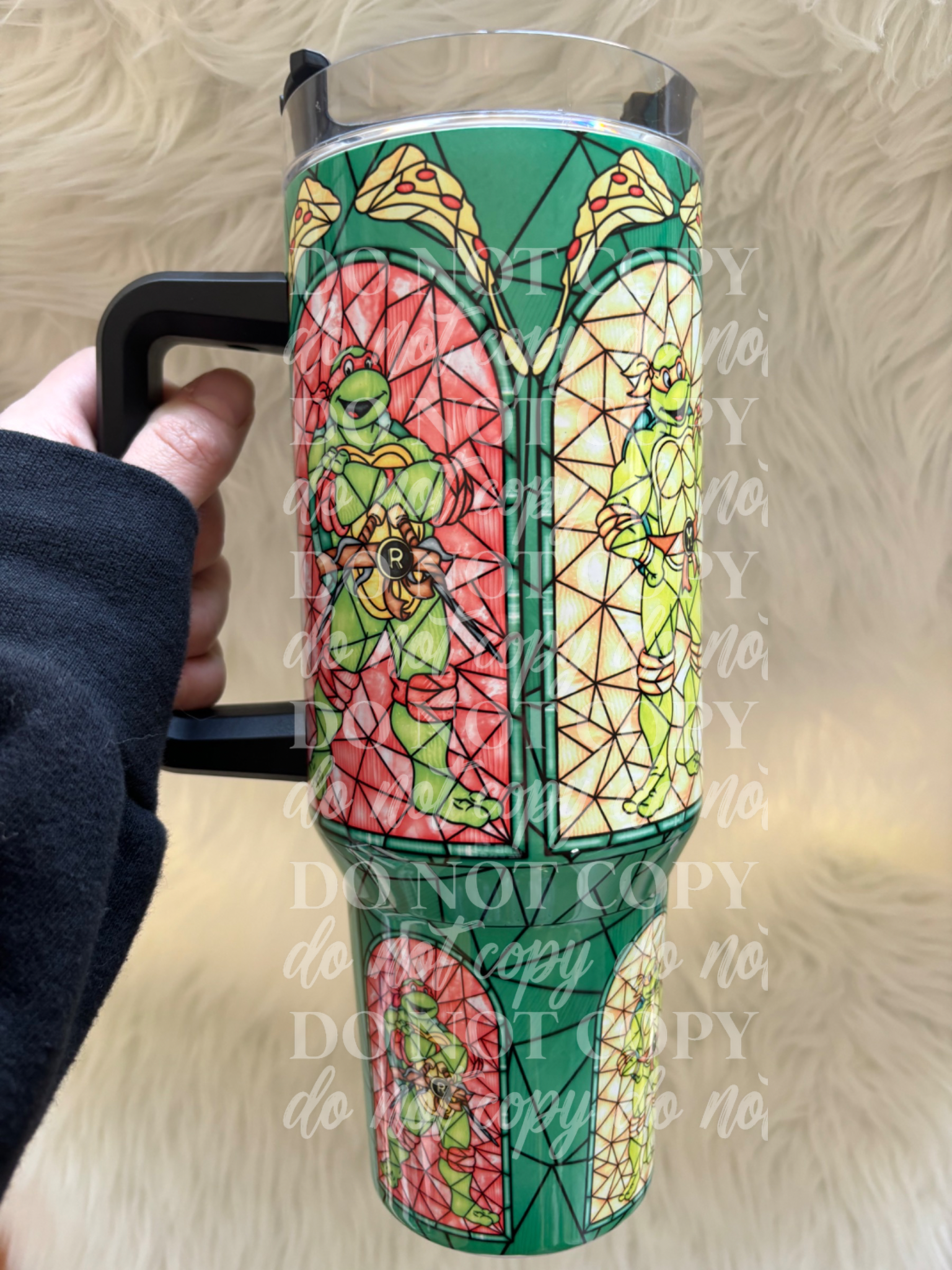 40oz Quencher Tumbler with TMNT Stained Glass design.
