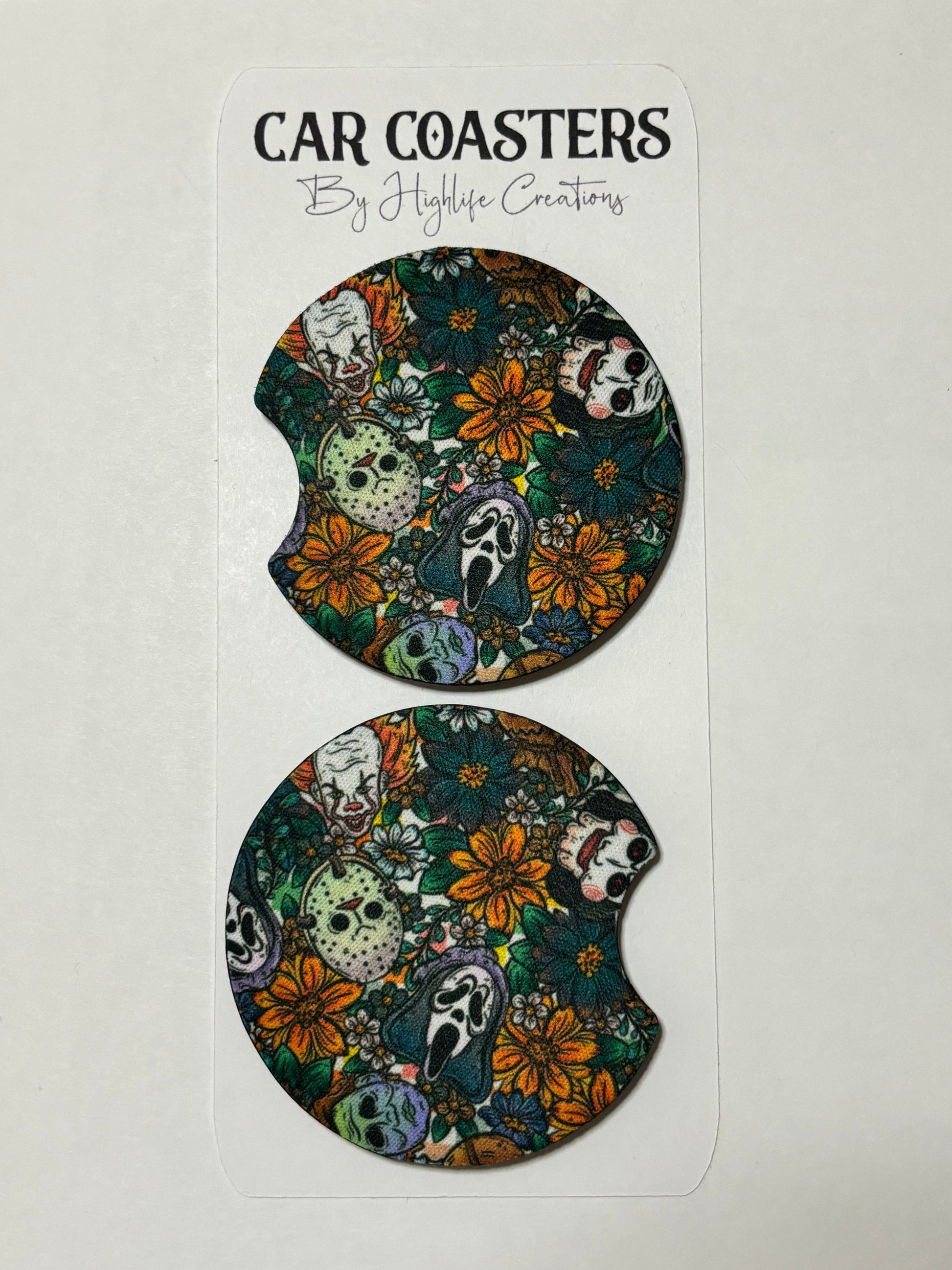 Green Floral Horror Car Coasters