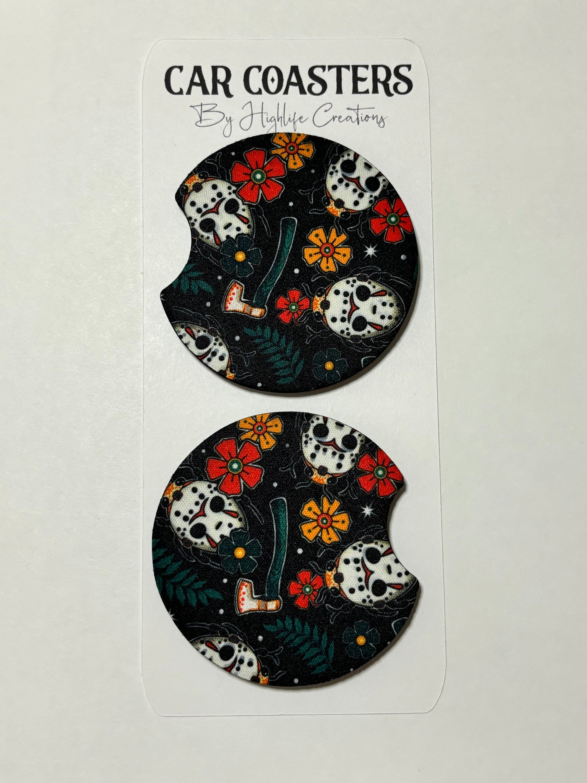 Keep your cupholders clean and stylish with these extremely absorbent, high quality neoprene car coasters! Designed to fit most cupholders! Just rinse with soap and water to clean.