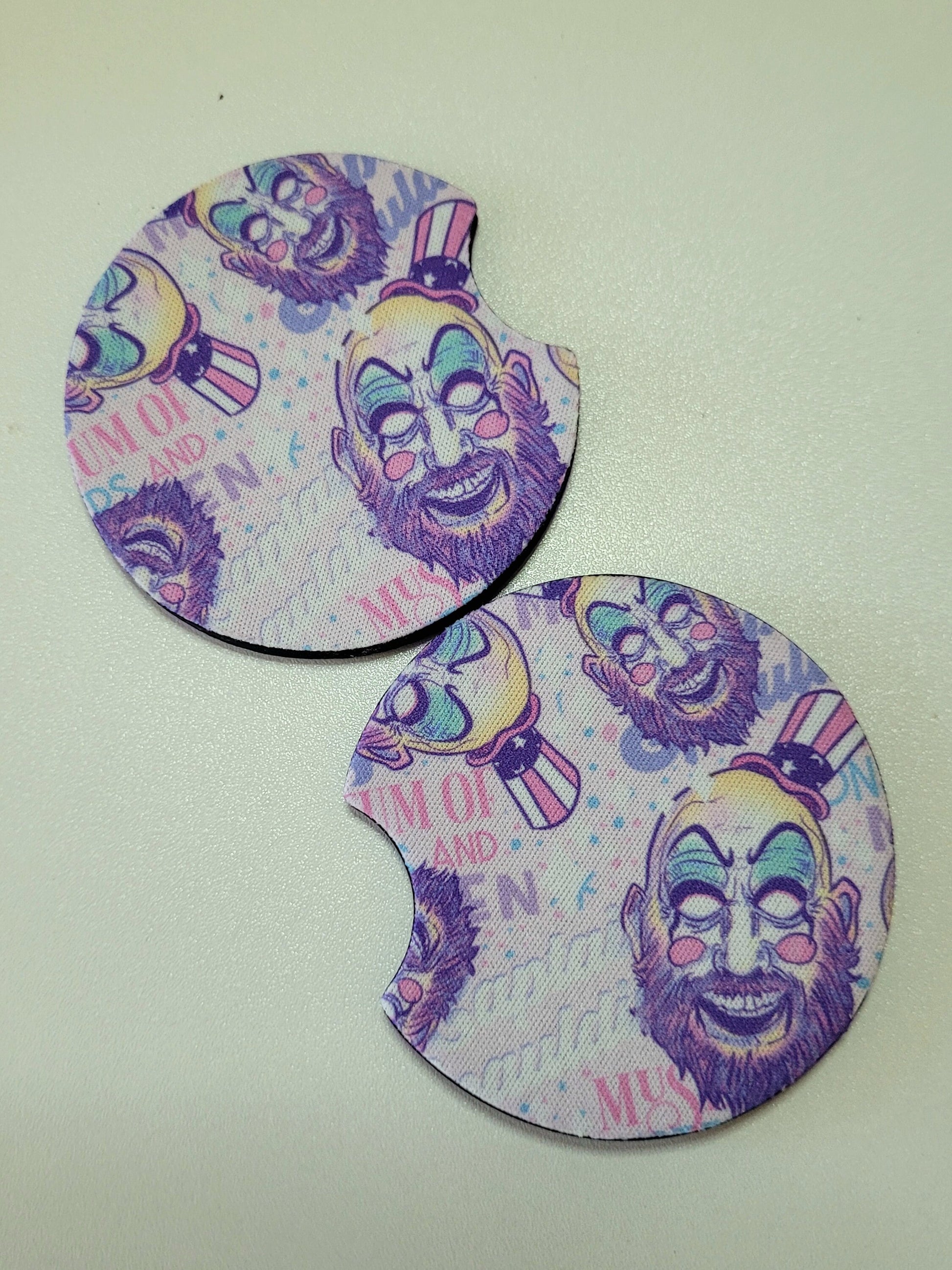 Keep your cupholders clean and stylish with these extremely absorbent, high quality neoprene car coasters! Designed to fit most cupholders! Just rinse with soap and water to clean.