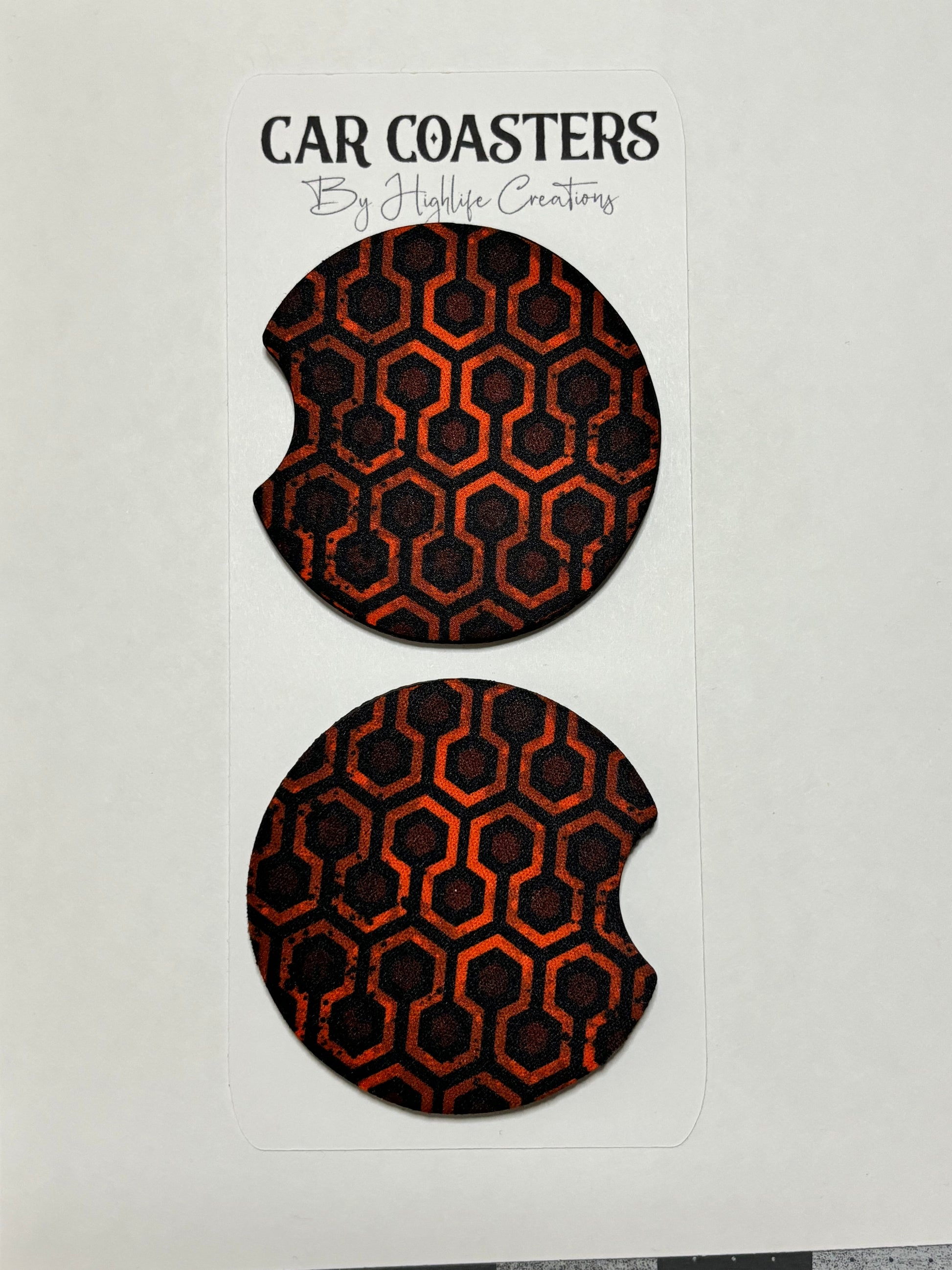 Keep your cupholders clean and stylish with these extremely absorbent, high quality neoprene car coasters! Designed to fit most cupholders! Just rinse with soap and water to clean.
